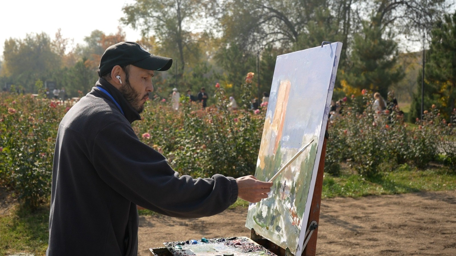 Масштабное мероприятие прошло на площадке перед Библиотекой Фараби в университетском городке. В пленэре под открытым небом приняли участие члены Союза художников Казахстана – Малик Кайдаров, Курмангазы Акашев, Ернат Иманбакиев, Нурболат Талгатулы, Айдос Сейдакул, Малик Жумагулов, Бактияр Буркитбаев, Тулеген Сулейменов, Серик Тайнов, Нурлан Сатаев, Серик Агатаев, Акмарал Кажыбек, Перизат Тайнова, Тургын Абдурахман и другие известные мастера кисти.