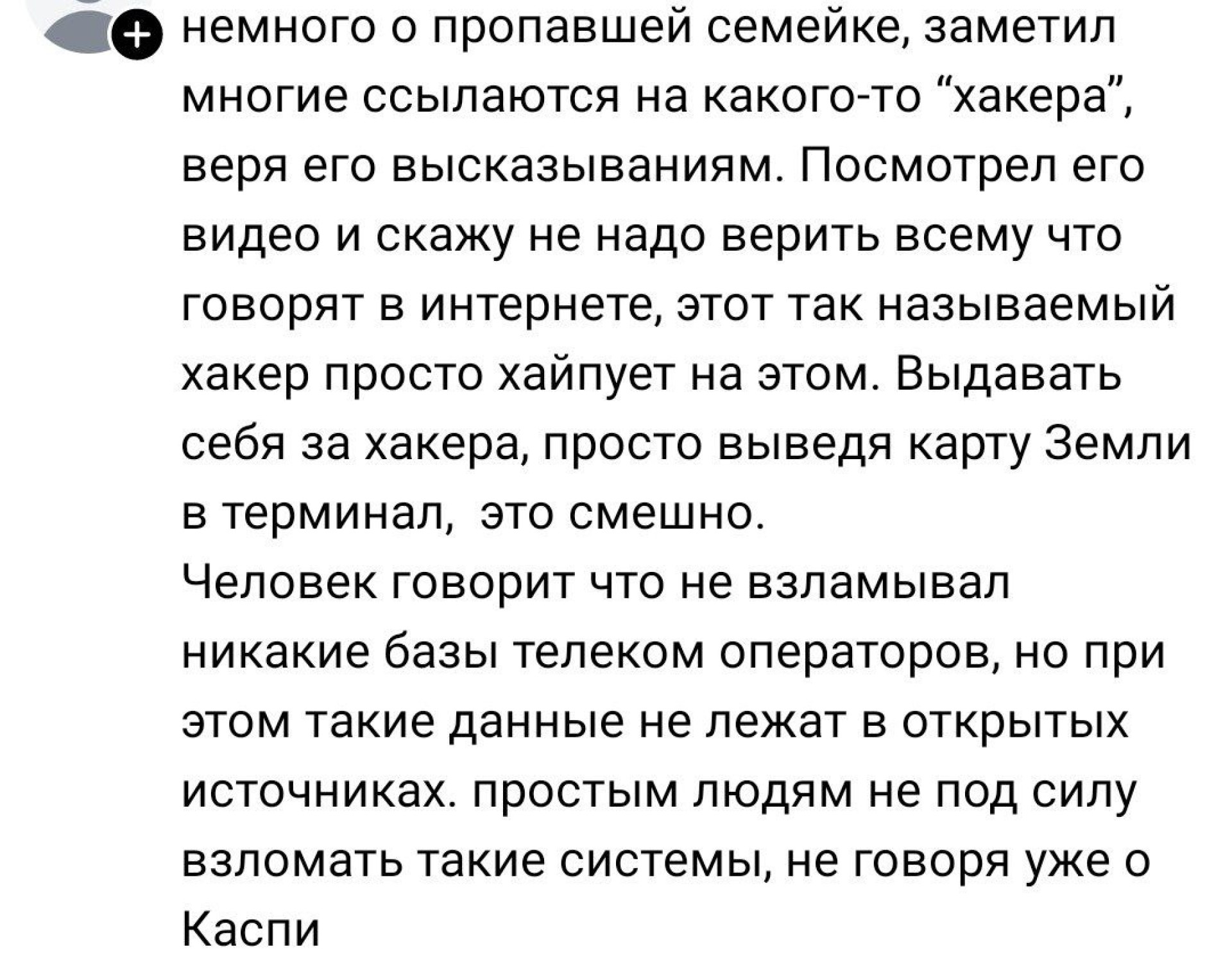В социальных сетях неизвестный, называющий себя хакером из Атырау, заявлял, что якобы "провёл расследование" по делу об исчезновении семьи
